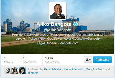 Africa’s richest man Aliko Dangote has joined Twitter on December 31, 2013, Tuesday.