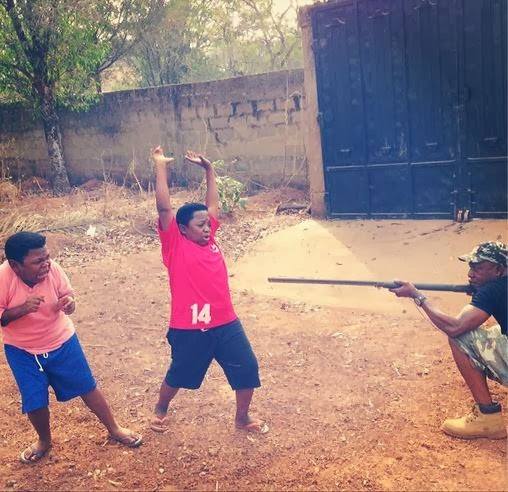 Our big pictures of the day— Chinedu Ikedieze and Osita Iheme in big trouble with Patience Ozokwo a.k.a Mama G;  Nkem Owoh a.k.a Osuofia is ready to shoot at sight, lol…  Funny pictures!!!