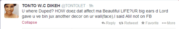 One Response to “You Were Duped? How Does That Affect Me – Tonto Dikeh Tells Fan”