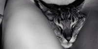 The picture features a naked woman with a cat’s head where her, for a lack of a better word, pussy, is supposed to be. The cat seems super comfortable, too, as if it hangs out there all the time.