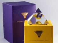 Translated as “Sacred Tears of Thebes,” the fragrance designed by Christine Nagel smells of myrrh, frankincense, amber, jasmine, geranium, ylang-ylang, cardamom, basil, myrtle, sandalwood and musk. The bottle, handmade by Baccarat artists and largely responsible for the price, is capped by an amethyst crystal with a bubble of yellow crystal blown inside to house the scent.