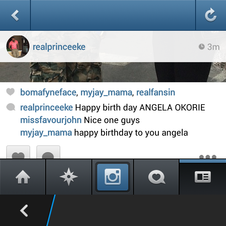 It looks like the on going beef between Actor Prince Eke and Actress Angela Okorie over the S.A scandal is cooling down bit by bit as Prince Eke wishes her a happy birthday minutes ago via Instagram. Well, for us here, is a sign of maturity…. One love for all!