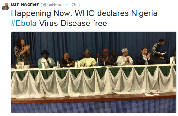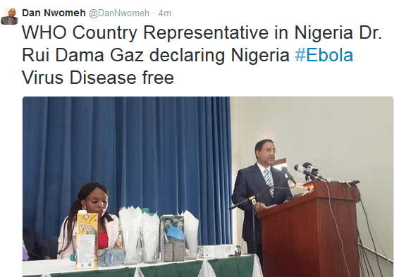 Nigeria has been declared officially free of Ebola after six weeks with no new cases, the World Health Organisation says.