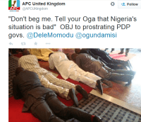 Nothing bad abt it, it is Yoruba culture to porstrate for elders when greeting them, so OBJ is old enough to be their father.