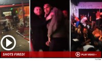 Brown was singing at 1:20 AM and the crowd seemed peaceful … then, suddenly, gunshots ring out, sending everyone including Chris into panic.