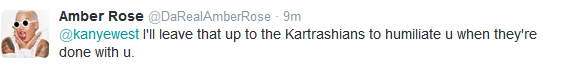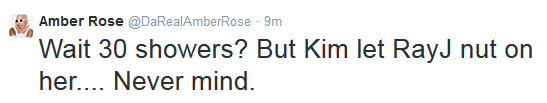 “Amber’s just soaking in the moment. If Kim had dated me when I wanted, there would be no Amber Rose. It’s very hard for a woman to wanna be with someone that’s with Amber Rose. I had to take thirty showers before I got with Kim.”