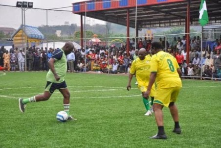 Mr. Obasanjo scored two goals for his team, defeating the Amosun team which recorded one goal at the full time of the match.