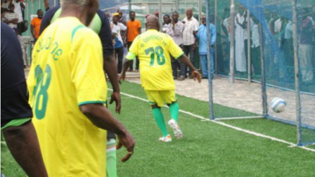 The match which was designed as part of his 78th birthday programme, took place at Moshood Abiola Stadium, Abeokuta, with Governor Ibikunle Amosun, leading the state team.