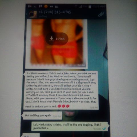 “A few yrs ago this boy Steve Ugochukwu Onyebuchi, based in Canada contacted me on Facebook and asked me out. I told him i’m not gay. I’m married. Leave me alone. Later I started getting calls from him, he said he has friends in Nollywood who always get him any number he needs. I blocked all his numbers. After a very long time he started calling me again, and sending me messages on whatsapp. He said he went on the internet and learnt how to call people with different numbers on one phone, so I cant block him anymore.