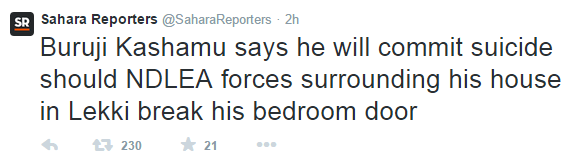“The National Drug Law Enforcement Agency(NDLEA) this morning (Saturday,23rd May, 2015) at about 4:30am surrounded the Lekki Phase 1, Lagos residence of Prince Buruji Kashamu to allegedly effect his arrest following a purported extradition request from the US.