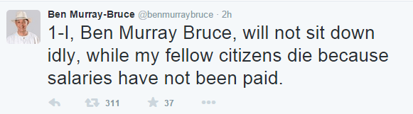 Murray-Bruce, on his Twitter handle, said “I, Ben Murray Bruce, will not sit down idle, while my fellow citizens die because salaries have not been paid.