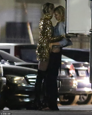 Miley Cyrus was caught kissing her lover, Victoria Secret model, Stella Maxwell. The 22-years old singer was spotted stealing a passionate kiss with the 24-years old blonde just minutes after she took a break from filming her new music video outside The Palm Beverly Hills in Hollywood.