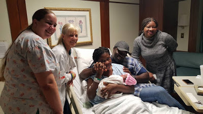 Mercy Johnson and her husband Prince Okojie welcomed their third child yesterday, a baby girl, in Baltimore, Maryland. Congrats to them!