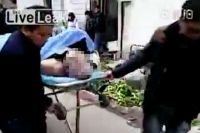 The shocking video, was has been shared thousands of times online, shows the man lying on a stretcher covered in a blue sheet.