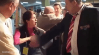 The video ends with the man seizing the microphone and announcing something over the PA system – probably trying to end the altercation as soon as he could.