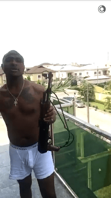 The kind of people we have as ambassadors in Nigeria. Only in Nigeria will this happen and the police will also laugh about it. Davido yesterday shared a video on snapchat in which he’s seen shooting a gun from the Balcony of his home in Lekki. What do you intend to convey with this scandalous act to the youths that look up to you as their mentor?