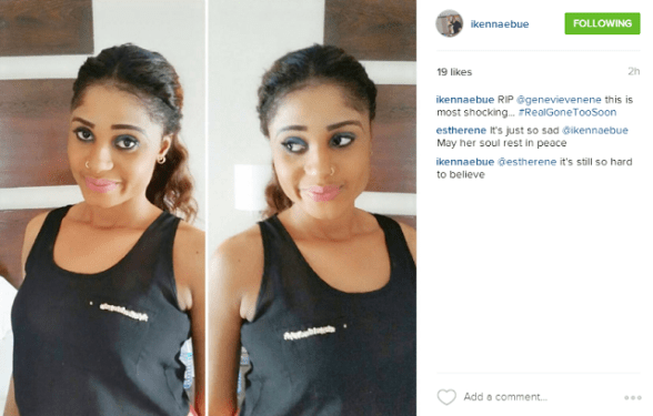 Nollywood Director, Ike Nnaebue took to his Instagram page this morning to announce the passing of upcoming actress, Genevieve Nene.