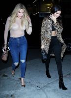 The reality TV beauty followed in the footsteps of her bold sister Kim , flashing the flesh as she partied in Hollywood wearing a very revealing item tucked into a pair of blue jeans.