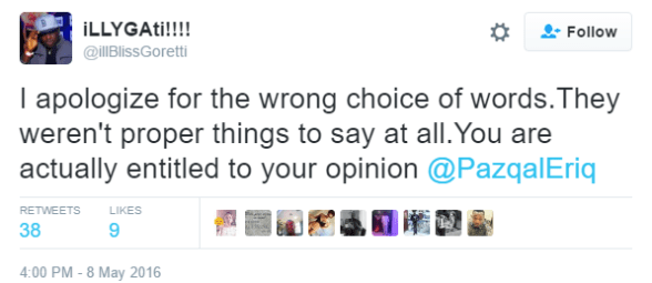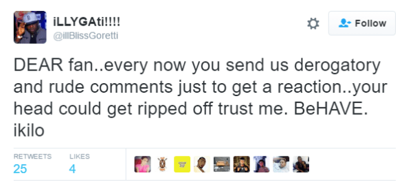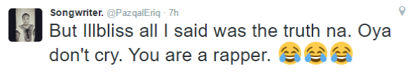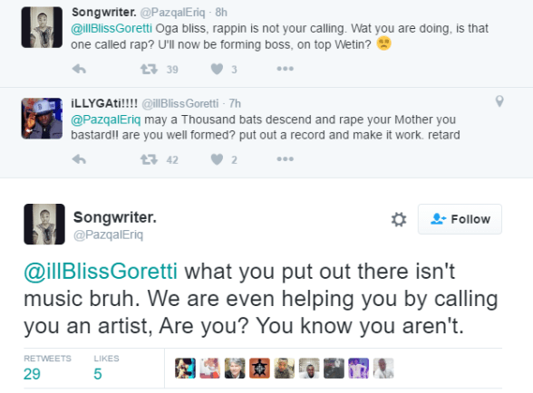 Nigerian rapper Illbliss threw caution to the wind yesterday and went ballistic on a follower after the aspiring model, artiste and VJ out of nowhere started abusing him and said rapping wasn’t his calling!