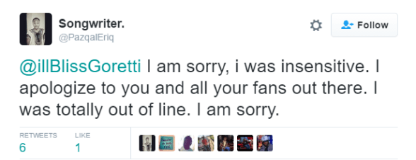 The two men later made up after Illbliss apologized for his outburst.