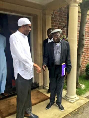 President Buhari with Bola Tinubu and the Awujale of Ijebuland, Oba Sikiru Adetona Ogbagba II, in London Yesterday…is he looking healthy?