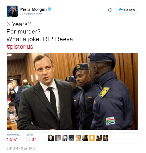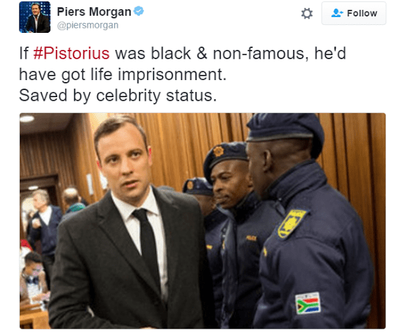 One Response to “Surprise as Oscar Pistorius is jailed for only 6 years for murder of girlfriend”