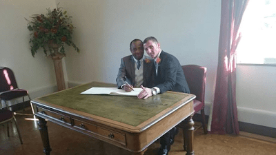 Nollywood actor, Kayode Ogunyemi, who became famous for his role in the then popular series, Doctors Quarters, is living happily with his Irish husband, Keegan in the UK now. Kayode who is now Mr Keegan, tied the knot with his husband in March last year…see some of their photos below: