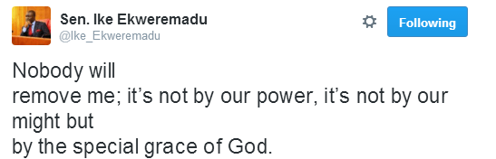 A tweet by Senator Ike Ekweremadu, who is standing trial alongside the Senate President Bukola Saraki, for alleged forgery of senate standing orders…