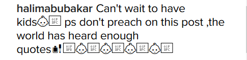 Remember months ago she said “I don’t want to ever get married. Those in it are miserable. Forget the smiling, I didn’t ask you not to marry…” so you can code now!