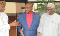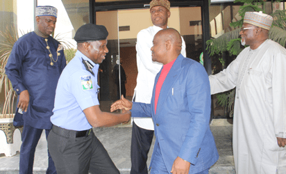 After one year of Tom and Jerry war, the Minister of transportation, Rotimi Amaechi and the current governor of Rivers state, Nyesom Wike shook hands during a peace meeting on the re-run of the senatorial /house of reps elections in Rivers state .The Inspector General of Police and the director of the DSS attended the peace meeting .