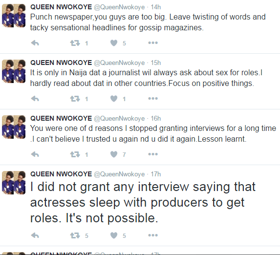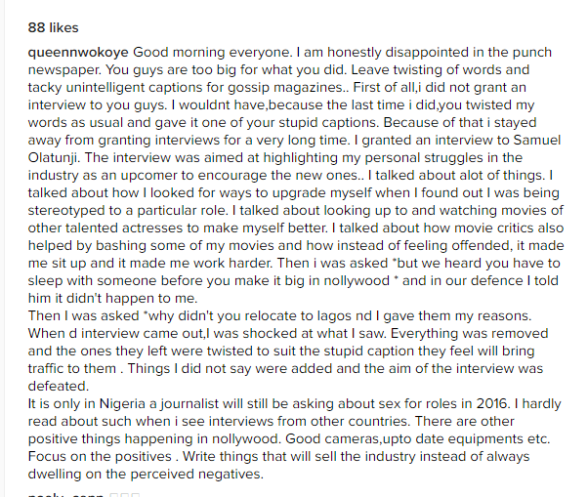 Her interview with Punch yesterday went viral, but just like our 2016 budget, the interview was heavily padded. As our beloved actress has denied saying that Nollywood actresses sleep with producers in exchange for roles in any interview with Punch or anywhere else…