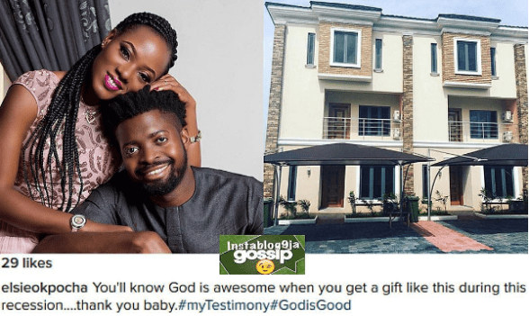 Basketmouth’s wife, Elsie Okpocha, posted a photo of a house ‘her husband bought’ for her in this period of ‘recession’ but deleted the post almost immediately…nice house though!