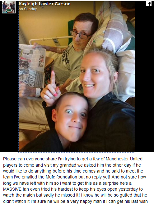 And so his granddaughter Kayleigh, 27, posted an impassioned appeal on Facebook in the hope someone would be able to make his dream come true.
