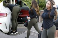 Wearing skin-tight leggings to emphasise her brand new curves, the star’s booty stole the limelight while she grabbed belongings from her car.