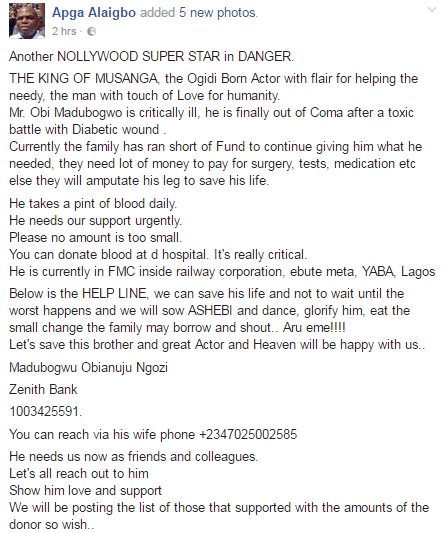 2 Responses to “Veteran Nollywood actor, Obi Madubogwo is seriously sick and needs support from Nigerians (Photos)”