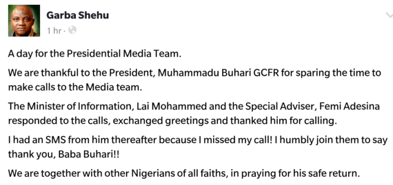 The presidential aide, who made this known on his Facebook page on Saturday, said Mr. Buhari originated a call to him from his London abode after he had spoken with some members of the presidential media team.