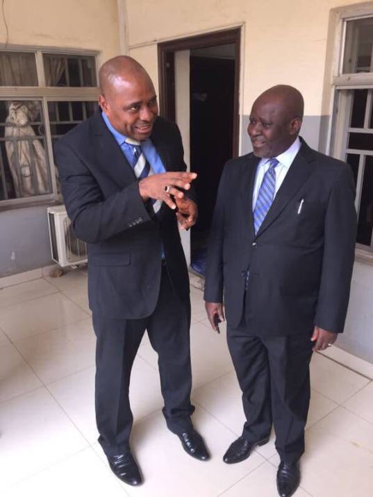 Kenneth Okonkwo discussing with the Counsel for the Petitioners, I. A. Adedipe (SAN)