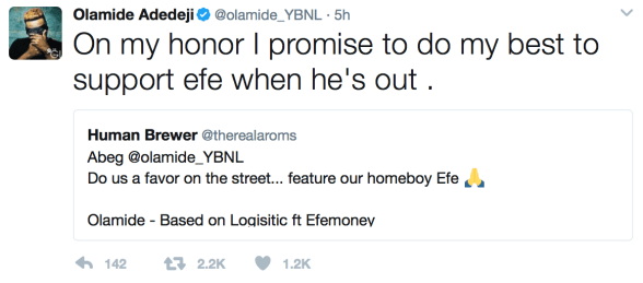 Rapper Olamide, who is responsible for creating music stars like Adekunle Gold, Lil Kesh and Viktoh, has openly declared his willingness to support Efe on his musical journey once out of the house…