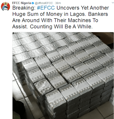 The whistle blowing policy of the Federal Government appears to be paying off as the Economic and Financial Crimes Commission on Wednesday announced that it uncovered foreign currencies and Naira notes to the tune of $43.4 million, £27,800 and N23.2 million at a four-bedroom apartment in Ikoyi, Lagos.