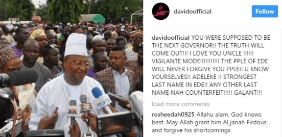 Davido wrote on his snapchat page @DAVIDO: “Osun will never be the same again. Smh”