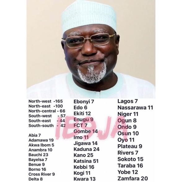 The anomaly in the exercise is further evident in the disparity between intakes from the two most populous states in Nigeria, Kano and Lagos, which have 25 and seven, respectively, indicating that the size of the pool of applicants from each state was not a factor in the recruitment.