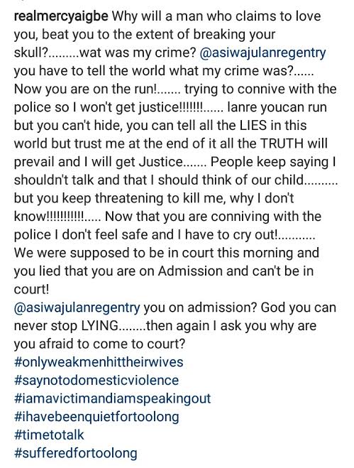 Actress Mercy Aigbe has alleged that her husband had connived with the police to evade justice.