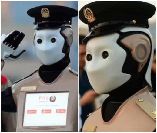Wearing a police cap and moving on wheels, the robot features a computer touch-screen on its chest that can be used to report a crime or inquire about speeding tickets.