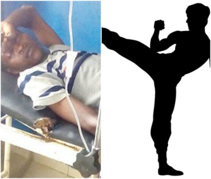 was beaten by his boss who is skilled in kung fu, who also stamped his foot on the victim before he was rescued by some other workers on the premises.
