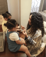 The actress who shared the above photo of the Caucasian man, strolling with her and their kids, wrote;