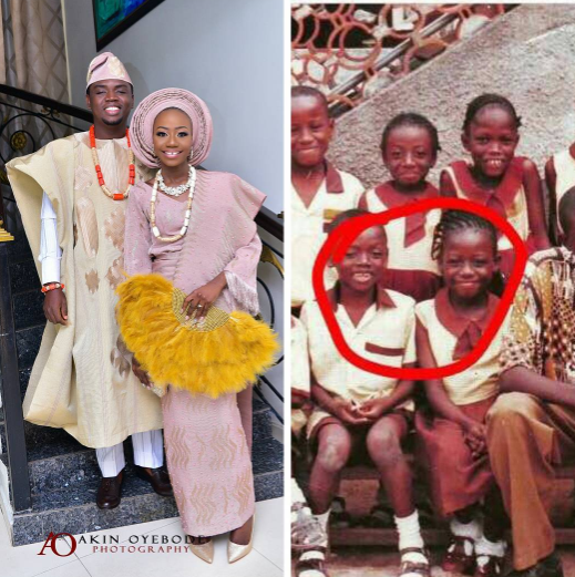 Their primary school photo was taken sometime in 1994. They had their traditional and church wedding in Lagos over the weekend…