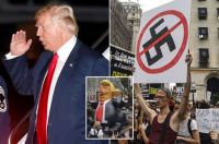 Donald Trump was given an ugly ‘welcome home’ on his first return to his New York penthouse since becoming President.