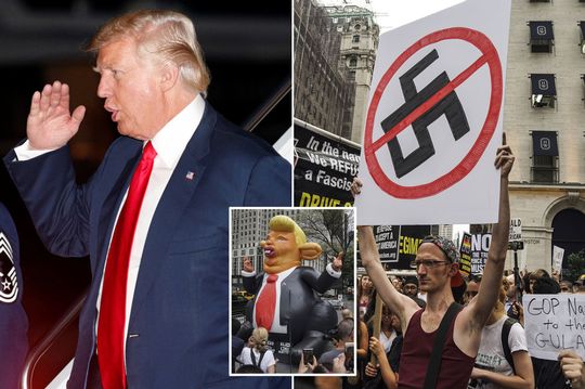 Thousands of angry protesters filled the streets opposite Trump Tower in Manhattan carrying placards denouncing Trump and chanted: “New York hates you”