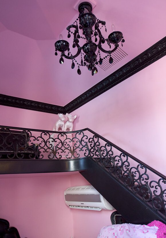 “My dogs live in this two-story doggy mansion that has air conditioning, heating, designer furniture, and a chandelier. Loves it.” Paris reportedly bought the mansion for $325,000…