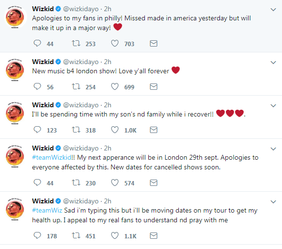 He also took time to apologise to his fans for the cancelled dates, which he blamed on his ill health.